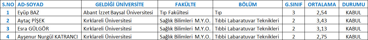2014-2015 Farabi Değişim Programı Gelen Öğrenci Sonuçları 29.04.2015